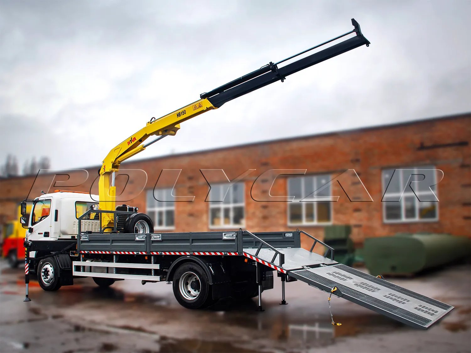 Вітчизняне підприємство “Спец-Ком-Сервіс” (Polycar) передала замовнику свій черговий новий продукт. Це потужний евакуатор, виконаний на шасі Foton Auman 1166. Машина оснащена краном-маніпулятором Hyva HB150E2, який забезпечує виліт стріли 11,5 м та вантажопідйомність 3065 кг. На кінці стріли вантажопідйомність становить 1620 кг, що дозволяє піднімати більшість легкових автомобілів. Вантажна платформа оснащена відкидними апарелями з гідравлічним приводом, а також лебідкою з тяговим зусиллям 9072 кг.