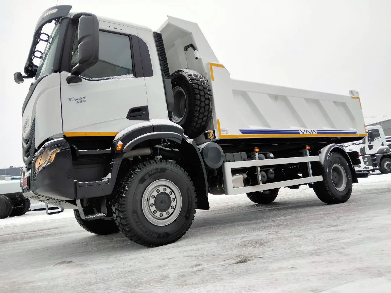 Вітчизняне підприємство «Віва», яке спеціалізується на різній комунальній техніці, виготовило чергову новинку. Це самоскид заднього розвантаження на базі повнопривідного шасі IVECO T-Way AD 190T43W. Така модель всюдихода вперше використовується українськими забудовниками самоскидних кузовів. Як видно з індексу, шасі розраховане на повну масу 19 т та оснащується 430-сильним турбодизелем.