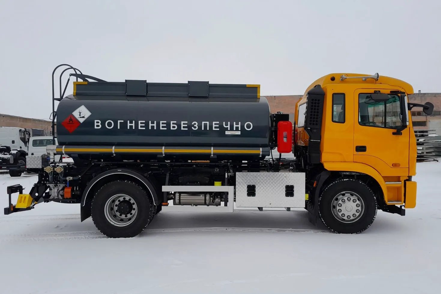Днями Завод спецтехніки “Техкомплект” відправив клієнту свій новий продукт – перший автопаливозаправник, виготовлений на шасі JAC N200. Модель АТЗ-10 оснащена 10-кубовою двосекційною цистерною типу «валіза». Передня та задні стінки зроблені опуклими для зменшення гідроудару під час руху.
