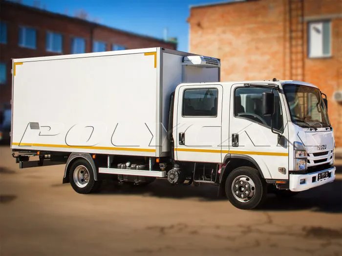 Тут змонтований безкаркасний фургон зі склопластикових сендвіч-панелей, між якими знаходиться 50-мм шар пінополістиролу. Підлога також має термоізоляцію. Завдяки використанню підрамника з алюмінієвих профілів надбудову вдалося максимально полегшити.