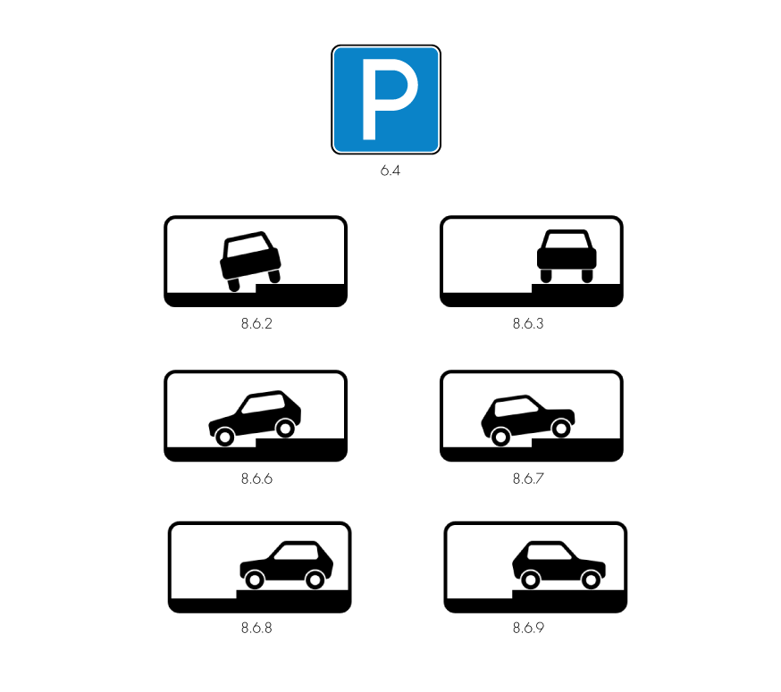 Второй вариант – легальная парковка на тротуаре. Но она разрешена только в случаях, установленных пунктом 12.2 ПДД, в котором содержатся информационные таблички, указывающие способ постановки на парковку. Пункт 12.2 указывает, что «стоянка на краю тротуара, граничащего с проезжей частью, разрешается только легковым автомобилям, мотоциклам, мопедам и велосипедам в местах, обозначенных знаком 6.4 с одной из табличек 8.4.7, 8.6.2, 8.6.3, 8.6.6-8.6.9».