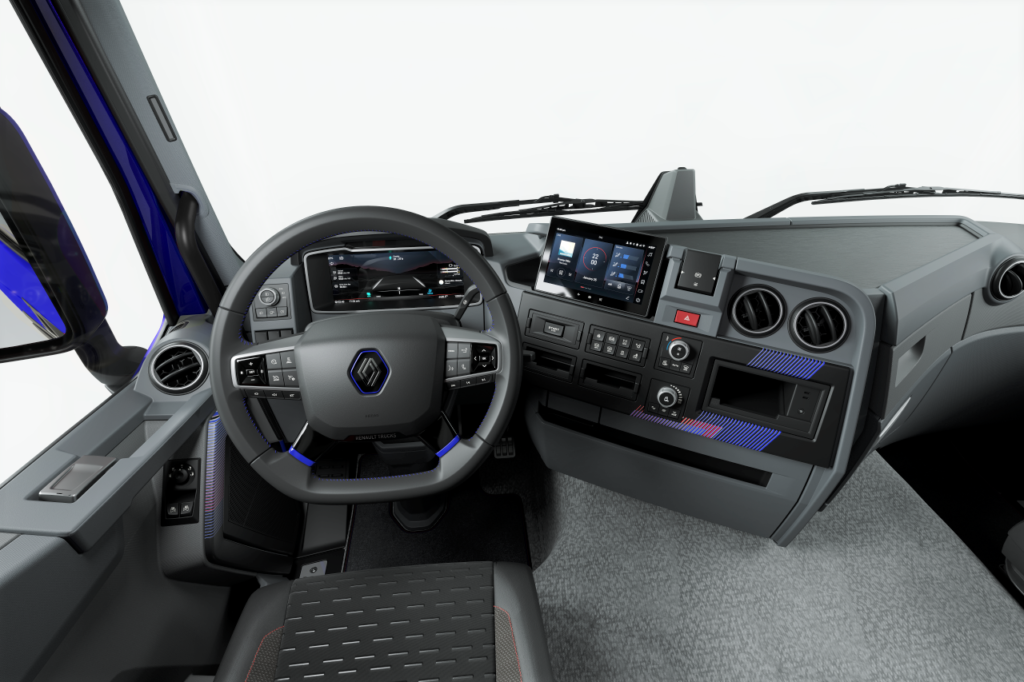Компанія Renault Trucks удосконалила інтер’єри кабін вантажівок важкого класу: серій T, T High, C та К, включаючи машини на електротязі E-Tech T та E-Tech С. Водій оцінить новий, 12-дюймовий цифровий щиток приладів, а також додатковий сенсорний дисплей інформаційної системи Android Automobile. На останній можуть виводитись дані з навігаційної системи, а також зображення з камер.
