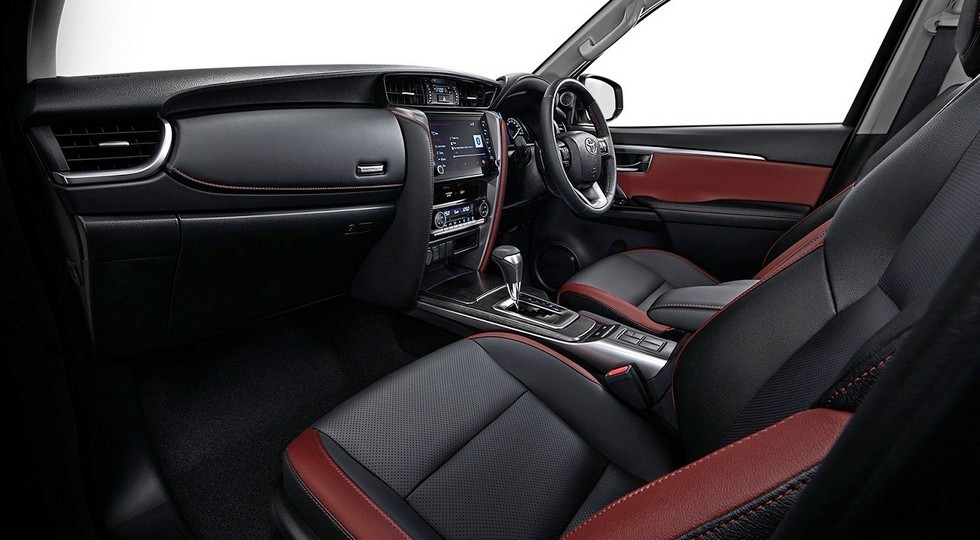 За основу для Fortuner Commander взяли «стандартный» внедорожник во второй по старшинству комплектации V (у модели есть еще «богатая» модификация Legender, у нее свой дизайн). Внешние отличия от «простого» вездехода – выполненные в черном цвете радиаторная решетка, накладка на переднем бампере, крыша, корпуса наружных зеркал, пороги и декоративная плашка на корме. Сам кузов может быть белым или красным. Кроме того, Коммандеру достались 20-дюймовые колеса – как у топового Fortuner Legender («стандартному» вездеходу положены 18-дюймовые).
