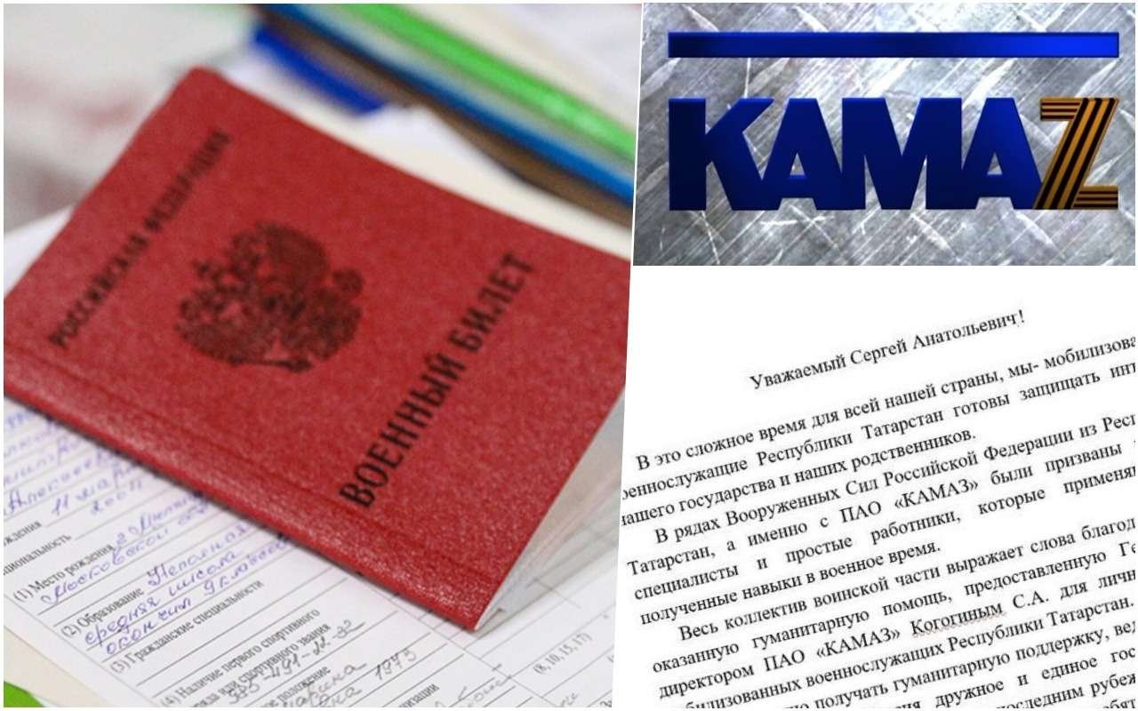 В ряды Вооруженных сил Российской Федерации из Республики Татарстан, в том числе с ПАО „КАМАЗ“, были призваны рабочие и специалисты. Весь коллектив воинской части выражает слова благодарности за оказанную гуманитарную помощь, предоставленную генеральным директором ПАО „КАМАЗ“ Сергеем Когогиным для личного состава мобилизованных Республики Татарстан», — говорится в тексте обращения.