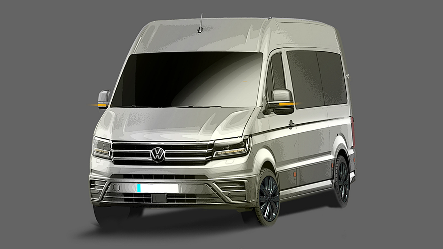 В VW пока что решили показать внешность и салон посвежевшего вэна с помощью официальных скетчей. Коммерческий автомобиль по-прежнему будет предлагаться в двух вариантах колёсной базы (3,64 и 4,49 метра), в разных весовых категориях (полная масса автомобиля – до 5500 кг), а также в версиях, отличающихся по высоте крыши (от 2,4 до почти 3 метров) и длины (от 6,0 до 7,4 метра). Визуальных отличий в экстерьере, судя по эскизу, практически не будет, разве что несколько иначе будут оформлены радиаторная решётка и нижняя часть переднего бампера.