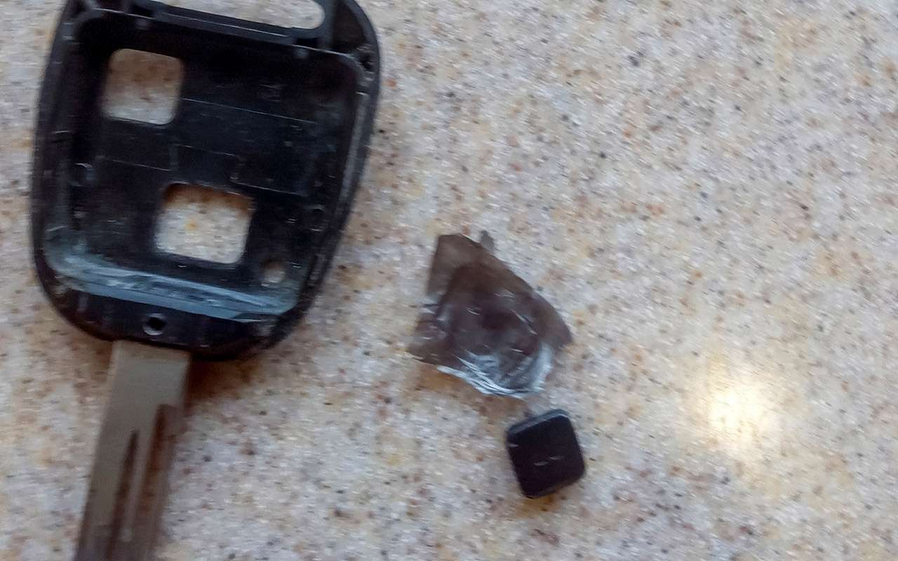 От старости из автомобильного ключа зажигания стала выпадать кнопка. На ней стерлись фиксирующие выступы.