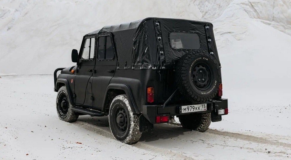 Как отмечается в сообщении пресс-службы УАЗа, новый вариант получил «исторические черты УАЗ-469» — это откидной задний борт, сворачивающийся мягкий тент с дугами, которые можно установить вместо съемной металлической крыши, и дополнительные складные сиденья в багажном отделении. От экспедиционного Хантера юбилейному внедорожнику достались металлические бамперы, кенгурятник, дополнительные подножки, внедорожная резина BF-Goodrich АТ TA KO 2 235/85R16, электрическая лебедка и силовая защита снизу. На кузов и приборную панель особого вездехода нанесено матовое покрытие «Раптор», устойчивое к механическим повреждениям. Также в арсенале УАЗ-469 значатся штатный шноркель и подогрев передних кресел (сиденья обиты «экокожей» с красной прострочкой), а еще для модели заявлены диодные фары. А вот ABS отсутствует – как и у других «антисанкционных» УАЗов.