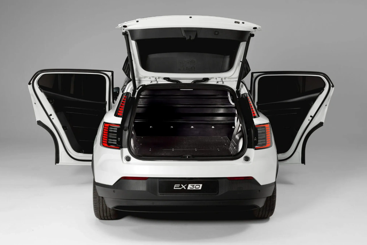 Також фахівці замінили систему відкривання задніх дверей і тепер вони розкриваються ширше, дозволяючи завантажувати габаритні вантажі. Ще встановили додатковий ліхтар для роботи в умовах обмеженої видимості. Вантажопідйомність кросовера складає 390 кг. Базова комплектація EX30 Cargo Core включає 18-дюймові легкосплавні диски Aero, адаптивний круїз-контроль, парктронік, камеру заднього виду, слот для бездротової зарядки смартфона.