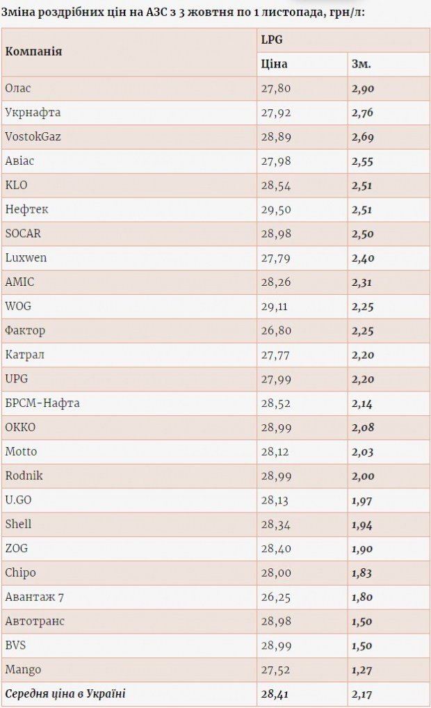 Крім того, на 1,3-2,9 грн/л здорожчав автогаз і в мережах «БРСМ-Нафта», Shell, Chipo, «Нефтек», BVS, «Олас» та інших.