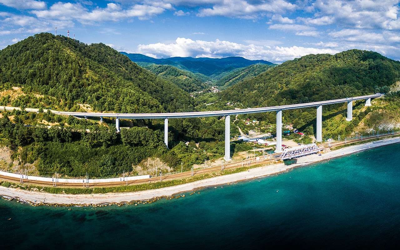 Виадук «Зубова Щель», он же Зубовский мост на федеральной дороге А-147 Джубга-Адлер, имеет 80‑метровые опоры!